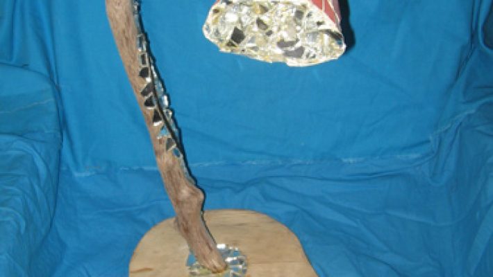 “Memorie del legno” ha quindi voluto unire l’arte povera con i legni antropomorfi raccolti in questi anni, conservati e rielaborati in quadri e sculture, unendo ad essi altri materiali: gli specchi, che utilizzo frammentati in tante piccole forme, in un mosaico d’immagini riflesse, a simboleggiare l’acqua del lago come fonte di nascita; la cera, nei suoi innumerevoli colori, colata o applicata come a simboleggiare il pulsare della vita nei legni, la ceramica, la plastica, il ferro, in una simbiosi armonica di materie.